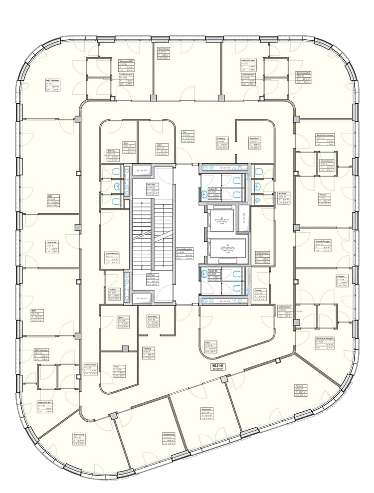 In einem neu erbauten Ärztehaus, das kurz vor der Eröffnung steht, stehen noch einige Praxisflächen zur Vermietung. Die Flächengrößen betragen zwischen 306 m² bis zu ca. 800 m².